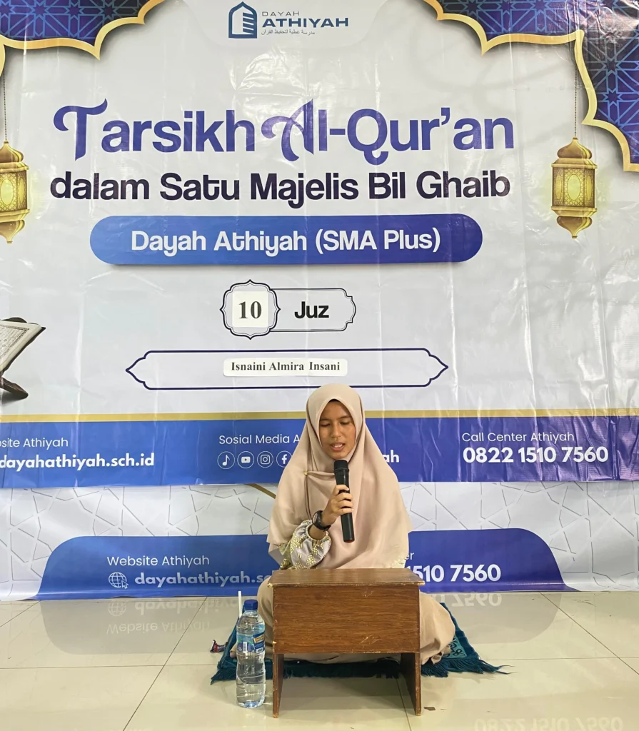 Banda Aceh – Prestasi membanggakan kembali diraih oleh santri Dayah Athiyah (SMA Plus) Banda Aceh. Isnaini Almira Insani, santri kelas XII, sukses meraih Juara 1 Lomba MHQ Golongan 10 Juz